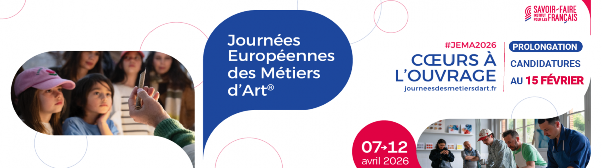 Journées Européennes des Métiers d'Art 2026Les candidatures pour participer aux prochaines JEMA sont ouvertes jusqu'au 15 février !