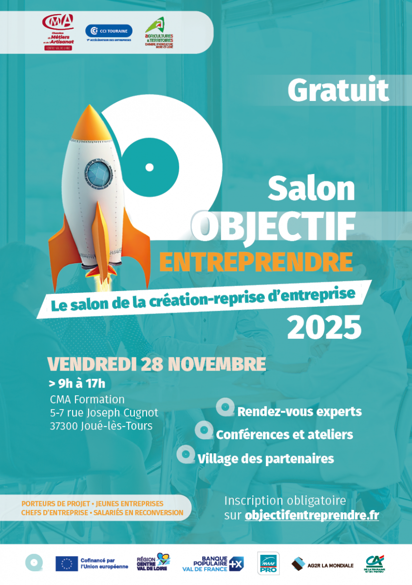 La Chambre de Métiers et de l'Artisanat Centre-Val de Loire, la Chambre de Commerce et d'Industrie Touraine et la Chambre d’Agriculture Indre-et-Loire organisent ce salon destiné à tous ceux qui ont un projet de création ou de reprise d'entreprise, aux personnes en reconversion, aux jeunes entrepreneurs et aux dirigeants d'entreprise.