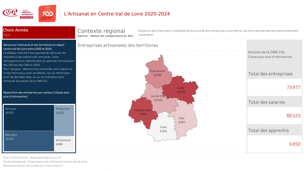 "Pérennité et survie des entreprises dans l’Artisanat en Centre-Val de Loire" en partenariat avec l'INSEE |